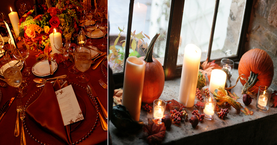 Autumn is a beautiful time of year to say “I Do!” The air is crisp, the leaves are changing, and the sweet harvest scent begins to swirl. When fall brides request floral and décor designs for their special day, we become excited with notion of using the bold color palette of orange, burgundy, and yellow florals to create a seasonal environment.